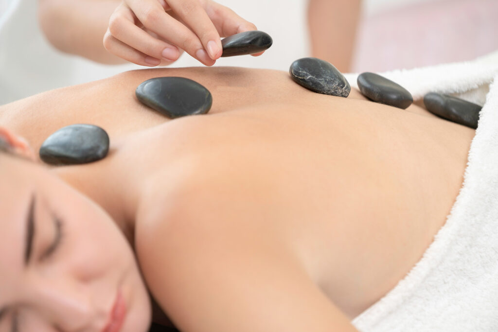 Bei dieser Massage wird mit erwärmten Basalsteinen gearbeitet und dient dazu, das körperliche und seelische Gleichgewicht zu festigen, Entspannung zu bringen und Blockaden zu lösen.